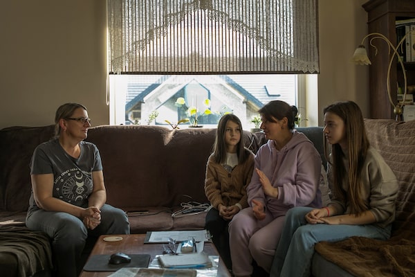 Golanta Glogowska, left, is sharing her house outside Przemysl with the Lazar family of Ukraine: Mother Galina, middle right, and daughters Eva and Lisa.