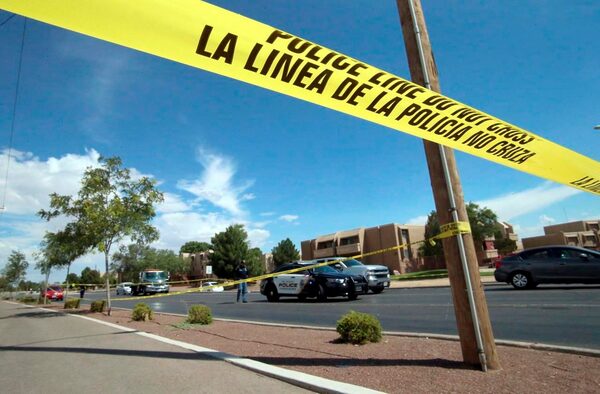 Police tape is strung across an intersection behind the scene of a shooting at a shopping mall in El Paso, Tex., on Aug. 3, 2019.The Canadian Press