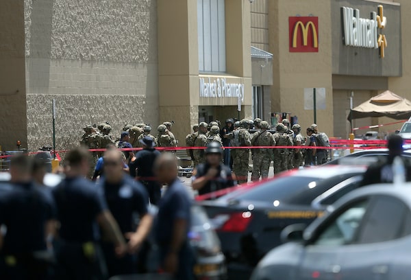 Several law enforcement agencies respond to an active shooter Saturday, Aug. 3, 2019, at a Walmart in El Paso, Texas.Mark Lambie/The Associated Press