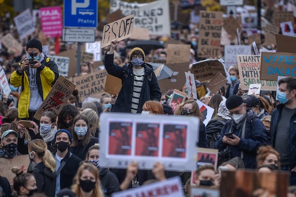 Hours earlier, Prime Minister Mateusz Morawiecki said the dispute should be resolved through dialogue, instead of through repeated mass street gatherings that are banned under pandemic restrictions. On Thursday, Poland hit a new record of daily infections that exceeded 20,100 in the nation of 38 million.