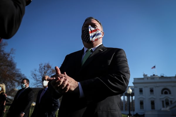 U.S. Secretary of State Mike Pompeo talks with reporters as he visits the White House in Washington, Dec. 11, 2020.OLIVER CONTRERAS/The New York Times News Service