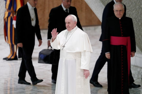 Pope Francis arrives at the Paul VI Hall for the weekly general audience at the Vatican, Oct. 21, 2020.GUGLIELMO MANGIAPANE/Reuters