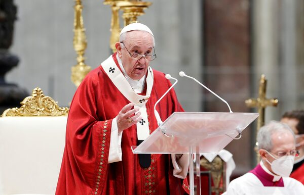 Pope Francis leads the Pentecost Mass at St. Peter's Basilica at the Vatican May 23, 2021.REMO CASILLI/Reuters