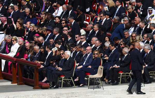 World dignitaries including Italian Prime Minister Giorgia Meloni and U.S. Vice-President JD Vance sat with dignitaries at Saint Peter’s Square for the mass.VINCENZO LIVIERI/Reuters