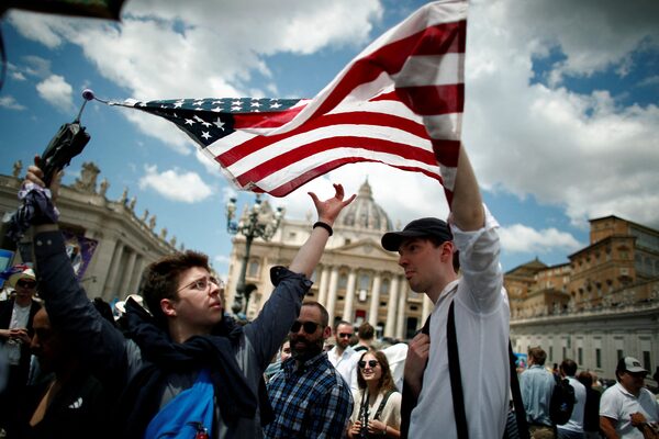 Some faithful came from the United States to celebrate the debut of the first American pontiff.Alessandro Garofalo/Reuters
