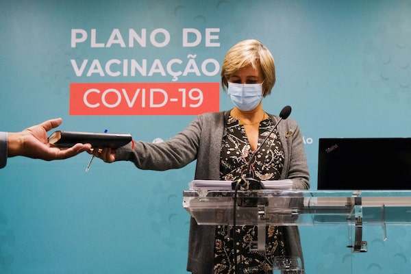 Portugal's Health Minister Marta Temido arrives at a news conference in Lisbon on Dec. 17, 2021.PEDRO NUNES/Reuters