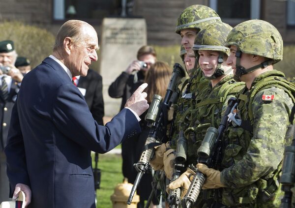 April 27, 2013: Prince Philip chats with members of 3rd Battalion of The Royal Canadian Regiment at Queen’s Park in Toronto. The two-day Canadian trip would be his last official visit to the country.Fred Thornhill/Reuters