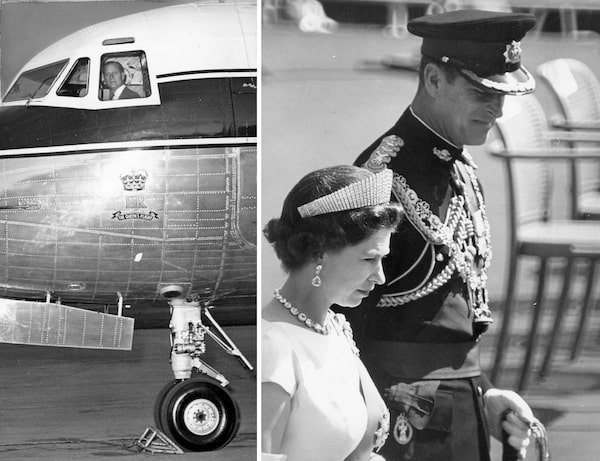 Nov. 7, 1967 (left): Prince Philip wings his way into Toronto at the controls of a Royal Air Force twin turboprop Andover transport. July 1, 1967 (right): Prince Philip and the Queen arrive on Parliament Hill in Ottawa for the morning ecumenical service on Canada’s 100th birthday.Harold Robinson and John McNeill/The Globe and Mail