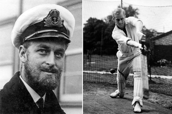 Left: Philip during a naval visit to Melbourne in August, 1945. Right: The young lieutenant bats at the nets during cricket practice at the Petty Officers’ Training Centre in Corsham, Wiltshire, in July, 1947.Associated Press