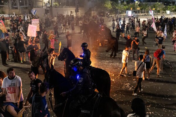 Protesters clash with mounted police officers during a demonstration calling for a hostages deal with Hamas and against Israeli Prime Minister Benjamin Netanyahu and his government on June 1 in Tel Aviv.Amir Levy/Getty Images