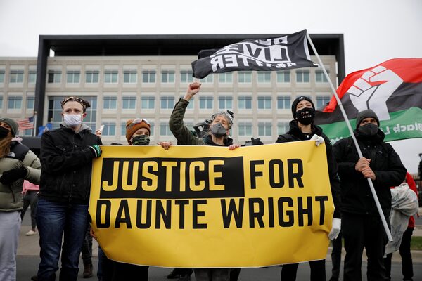 Demonstrators gather outside the FBI Minneapolis Division building on April 13, 2021, days after Daunte Wright was shot and killed by former Brooklyn Center police officer Kim Potter.NICHOLAS PFOSI/Reuters