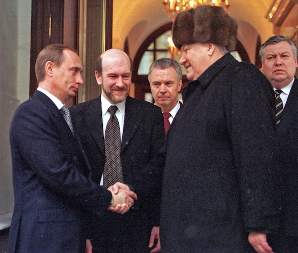 Outgoing president Boris Yeltsin, right, shakes hands with Mr. Putin on Dec. 31, 1999.WILLIAM WEST/AFP/Getty Images