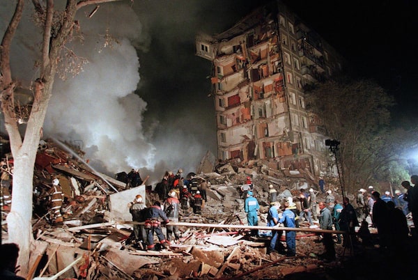 At top, smoke rises from a destroyed Russian apartment building on Sept. 9, 1999.Ivan Sekretarev/The Associated Press