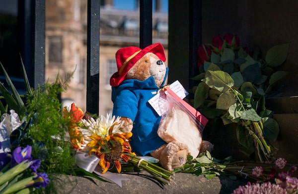 Outside Holyroodhouse, piles of flowers, cards and Paddington Bear and corgi mementos continued to grow on Sunday. One Paddington Bear was left with a marmalade sandwich. A card nearby said “I’ve done my duties Paddington, please take me to my husband.”