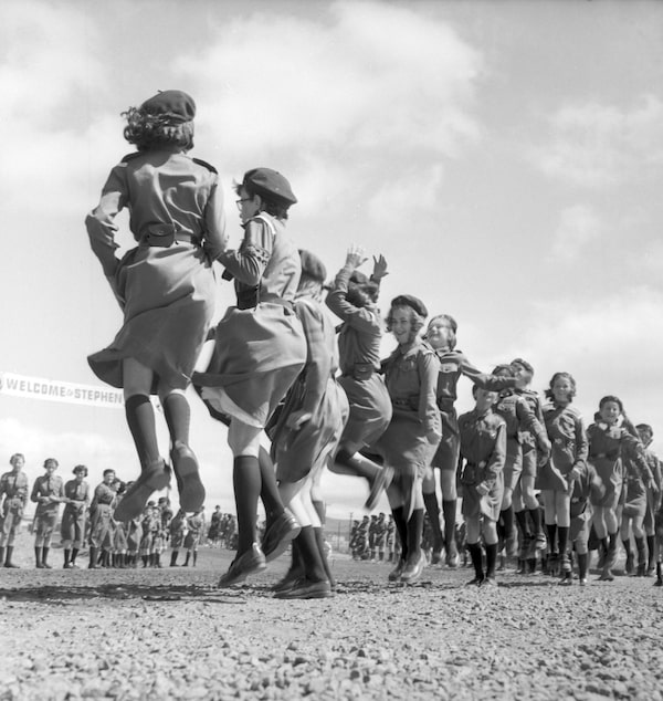 A group of Brownies jumping in the air to keep warm during a royal visit to Stephenville, N.L., in 1959.Erik Christensen/The Globe and Mail
