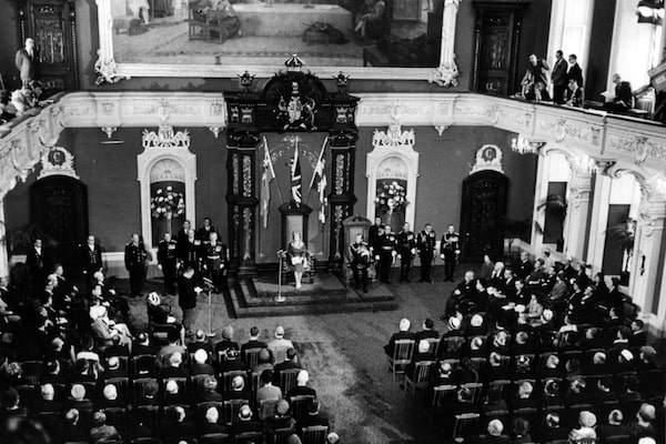 The Queen addresses Quebec's legislature on Oct. 10, 1964, one of her most infamous Canadian visits due to the hostile reaction by many Quebecers. Booing drowned out applause after her speech, which was delivered in French and English.John McNeill/The Globe and Mail
