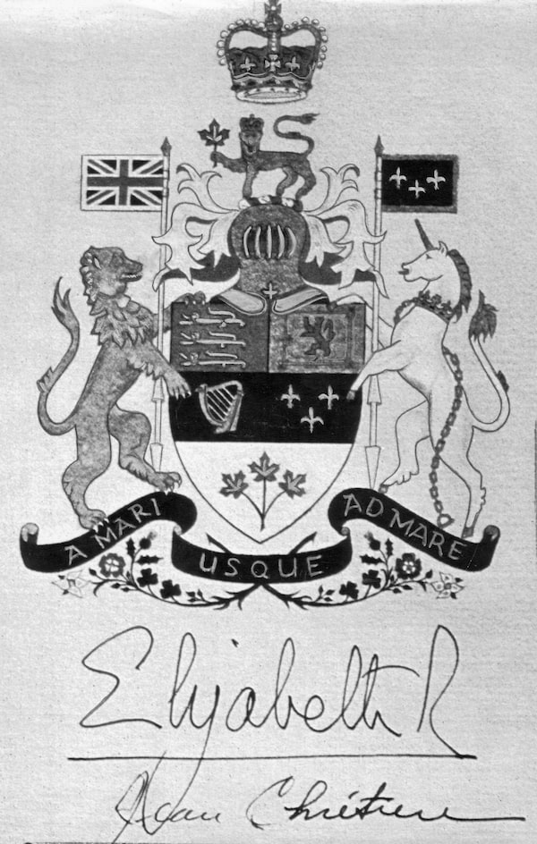 Below the Queen's signature is that of Jean Chrétien, then the attorney-general and later the prime minister.Andy Clark / UPC