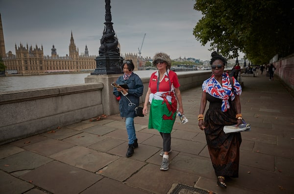 Grace Gothard, from Ghana, was one of the first people to join the official queue to view Queen Elizabeth when she lies in state in Westminster Hall, on Sept. 13.Kiran Ridley/The Globe and Mail