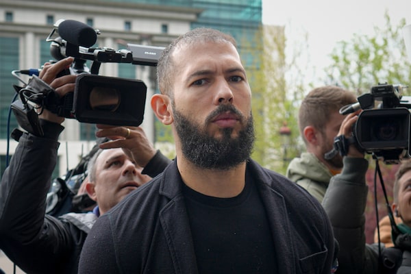 Andrew Tate arrives at the Bucharest Tribunal, in Bucharest, Romania, on April 21.VADIM GHIRDA/The Associated Press
