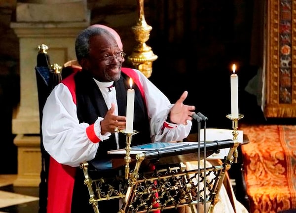 Reverend Bishop Michael Curry, primate of the Episcopal Church, speaks during the wedding ceremony of Prince Harry and Meghan MarkleOwen Humphreys/The Canadian Press