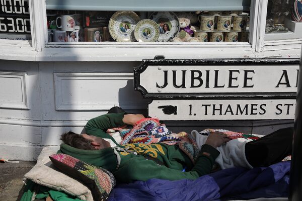 A homeless man sleeps next to a souvernir shop near Windsor Castle. The head of Windsor's borough council sparked controversy by suggesting homeless residents should be rounded up before the wedding.Dan Kitwood/Getty Images