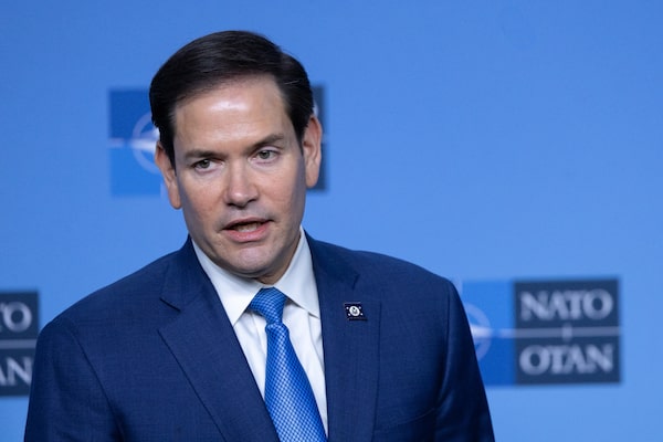 U.S. Secretary of State Marco Rubio speaks during a joint news conference at NATO headquarters, in Brussels, Belgium, on April 3.Omar Havana/Getty Images