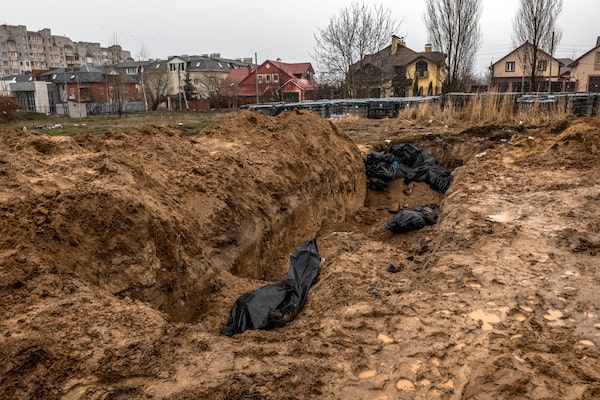 A mass grave on April 3 near an Orthodox church in Bucha, Ukraine.Daniel Berehulak/The New York Times News Service