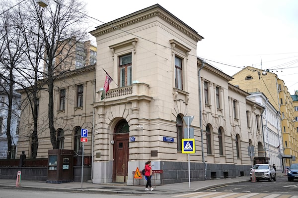 Afghanistan's embassy in Moscow on April 1. Russia is the first nation to recognize the country's Taliban government.Pavel Bednyakov/The Associated Press