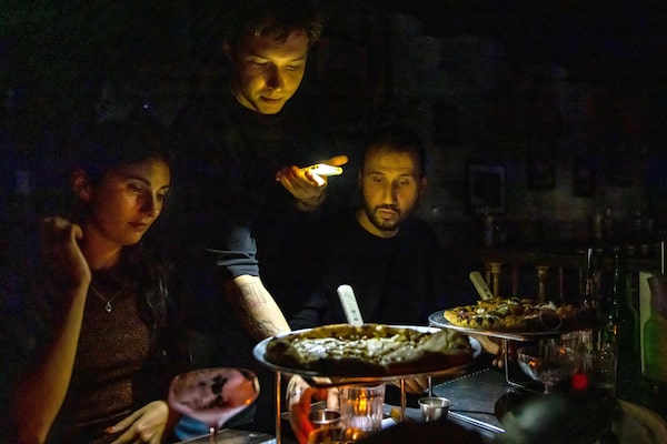 Customers in a restaurant in downtown Kyiv wait for the power to come back on during a regular blackout.Anna Liminowicz/The Globe and Mail