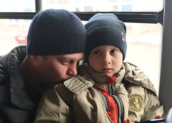 Fastiv residents board a bus that will evacuate them to Lviv, Ukraine on March 7, 2022.Anton Skyba/The Globe and Mail