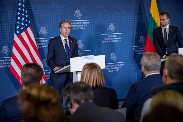 U.S. Secretary of State Antony Blinken has begun a lightning visit to the three Baltic states that are increasingly on edge as they watch Russia press ahead with its invasion of Ukraine.Mindaugas Kulbis/The Associated Press