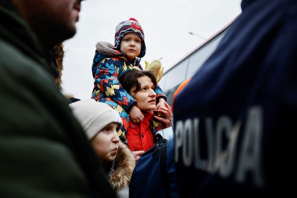 Ukrainians fleeing Russian invasion arrive in Poland in record numbers
