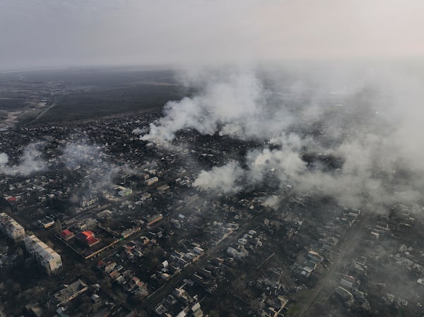 Smoke rises after Russian attacks on the outskirts of Bakhmut on Dec. 27.Libkos/The Associated Press