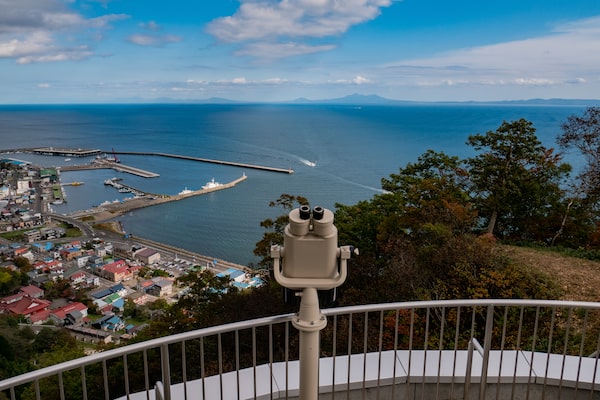 Kunashir, one of the Kurils, can be seen across the water from Rausu, a northeastern port city in Hokkaido.