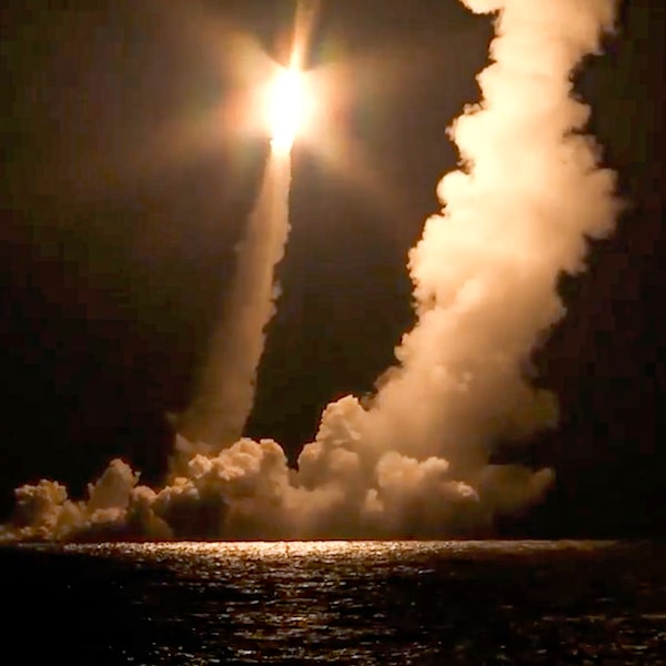 Russian ICBMs fire from a nuclear submarine in the Sea of Okhotsk in December, 2020.Russian Defense Ministry Press Service via AP