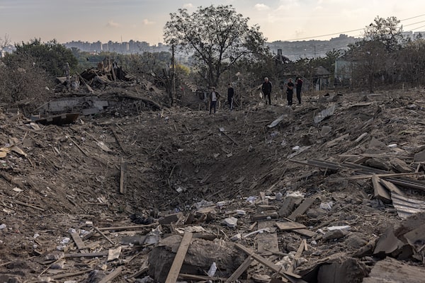 One of the Russian missiles crashed into Anna Novostroynaya’s neighbour’s home around 1 a.m. “Over there, there was a family with two children, and they’re gone,” Ms. Novostroynaya said, standing amidst shattered glass and debris. She said it was a miracle her five-year-old daughter had been in bed with her and her husband at the back of their home, where they were protected from the blast.