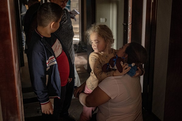 Anna Novostroynaya hugs her daughter Lesya at their family house.Anton Skyba/The Globe and Mail
