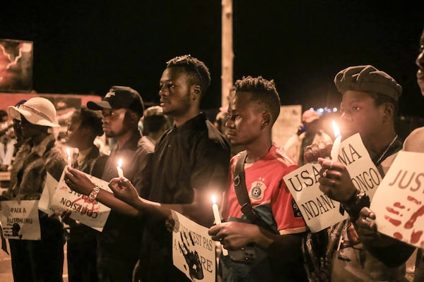 Residents gather for a prayer vigil in remembrance of the victims of the ongoing unrest in the East of Congo, in Beni, on Dec. 7.SEBASTIEN KITSA MUSAYI/AFP/Getty Images