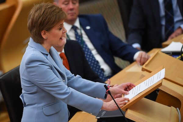 First Minister Nicola Sturgeon speaks in the Scottish Parliament at Holyrood, in Edinburgh, on June 28.ANDY BUCHANAN/AFP/Getty Images