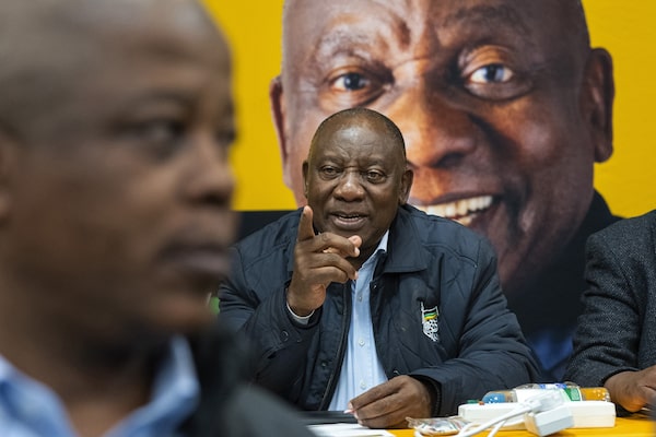 South African president Cyril Ramaphosa meets with senior officials of his African National Congress party during the ANC's National Executive Committee on June 6, in Johannesburg.Jerome Delay/The Associated Press