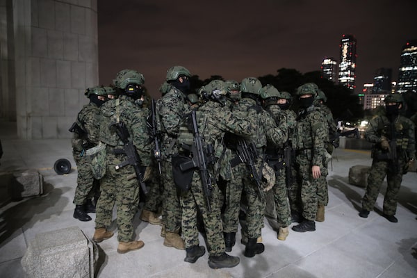 South Korean soldiers try get into the national assembly on Dec. 03 in Seoul, South Korea.Chung Sung-Jun/Getty Images