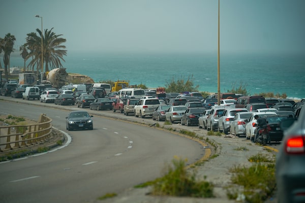 Traffic is seen heading south on Saida Highway from Beirut to southern Lebanon, as people return to their villages on the second day of a ceasefire between Israel and Lebanon on Saturday.Ryan Murphy/Getty Images