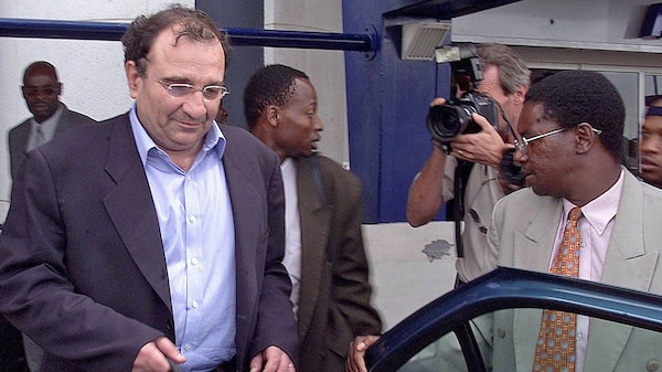 Zimbabwe, 2002: Ari Ben-Menashe is hustled into a car by Zimbabwean security personnel shortly after his arrival in Harare. Mr. Ben-Menashe is now president of Dickens & Madson (Canada) Inc., a Montreal-based lobbying firm.The Associated Press