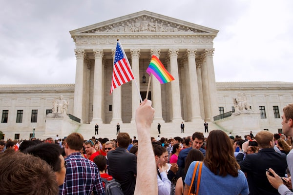 A crowd celebrates outside the Supreme Court in June, 2015 after the court declared that same-sex couples have a right to marry anywhere in the U.S.Jacquelyn Martin/The Associated Press