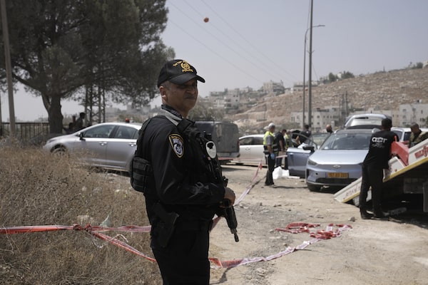 An Israeli police officer works at the site of a shooting attack near the West Bank city of Hebron, on Aug. 21Mahmoud Illean/The Associated Press