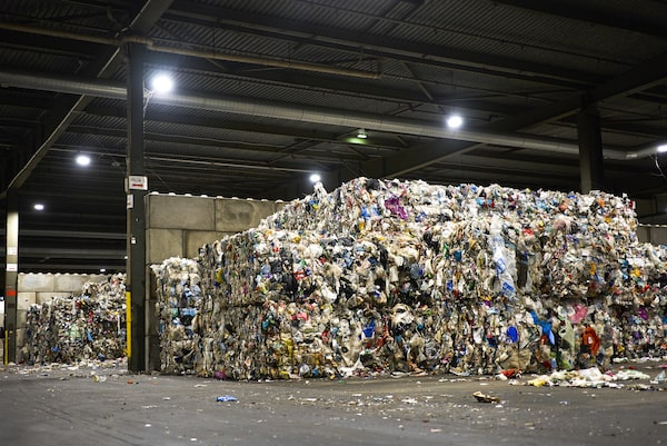 Plastic waste is stored in a new plastic waste sorting facility in Motala, central Sweden on Nov. 9.David Keyton/The Associated Press