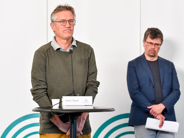 State epidemiologist Anders Tegnell, left, seen here on June 3, 2020, insisted on Wednesday that he stood by his overall approach and that strict lockdowns were not sustainable.Anders Wiklund/The Associated Press