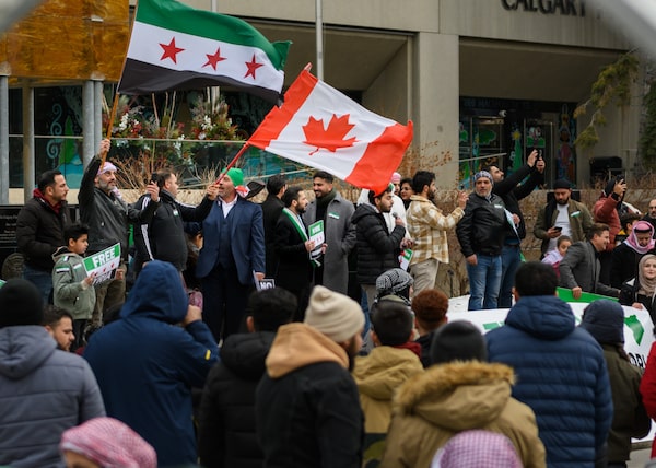 A protest-turned-celebration for the freedom of Syria from Dictator Al-Assad and his family’s 50-year rule at City Hall in Calgary on Dec. 8.Jude Brocke/The Globe and Mail