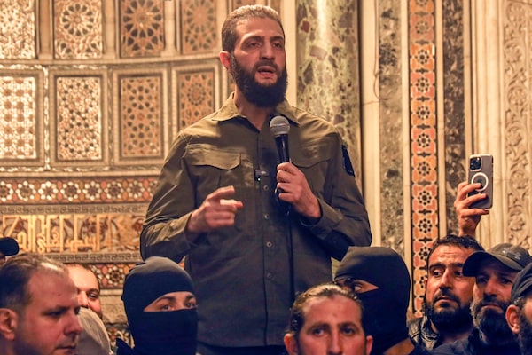 Abu Mohammed al-Golani speaks at the Umayyad Mosque in Damascus Dec. 8.Omar Albam/The Associated Press