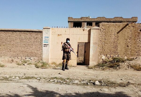 A Taliban solider stands guard in front of a house neighbouring the Islamic State hideout raided by Taliban forces on Sunday night in northern Kabul, on Oct. 4.STAFF/Reuters